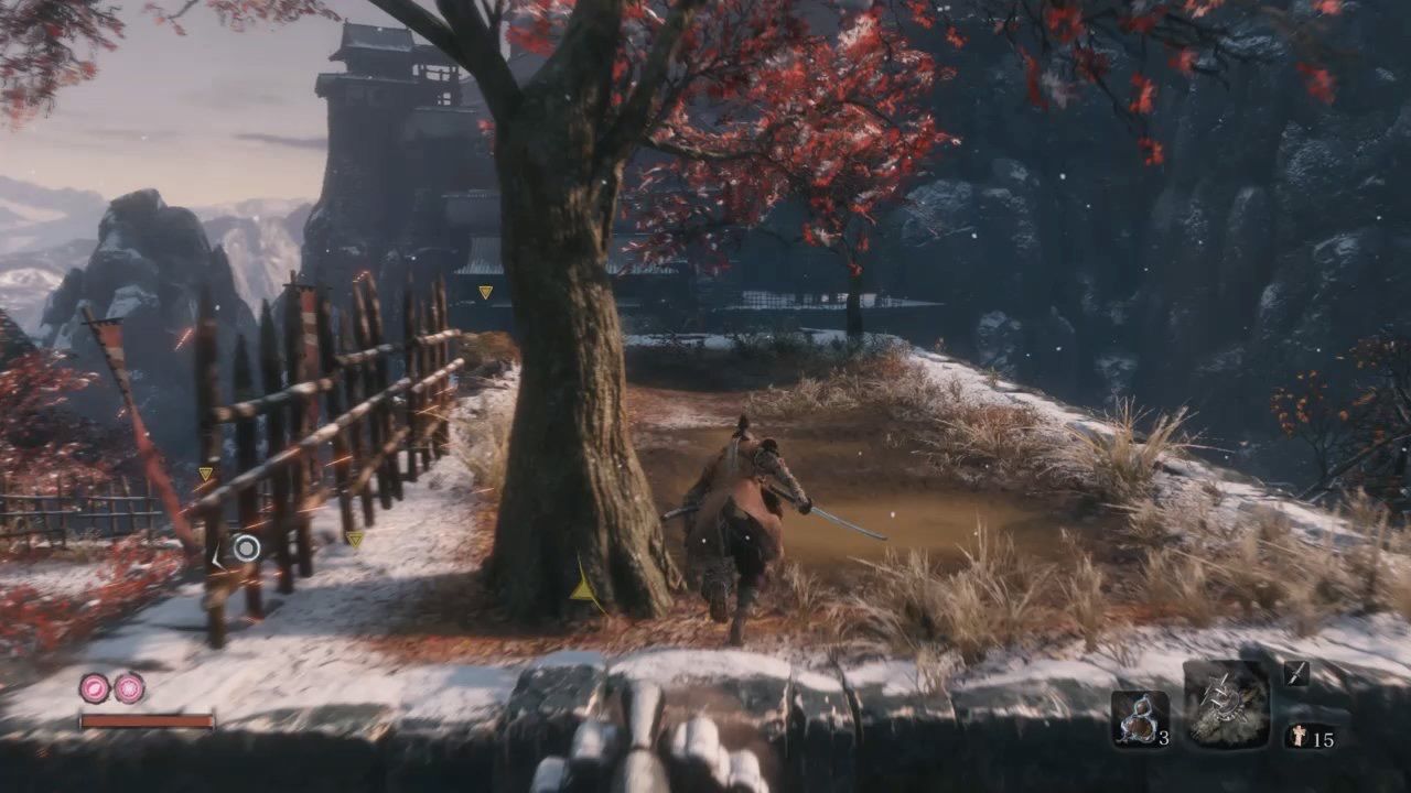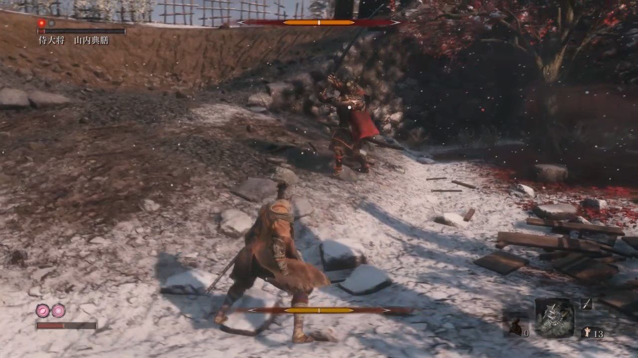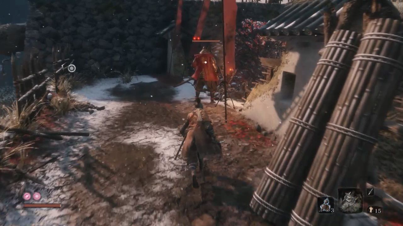 お蝶夫人の時も言いましたがこの隻狼にはルート分岐あるのですよね…チュートリアル後にスタートする場所が「荒れ寺」そこから普通に進めば最初の中ボスがいます(名前忘れた)