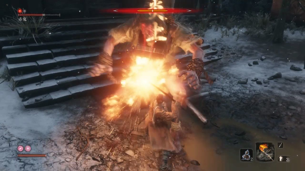 赤鬼はブラボスタイルで戦うのが正解です!つまり回避のみ!ガードや弾きを狙いに行く必要はなしです