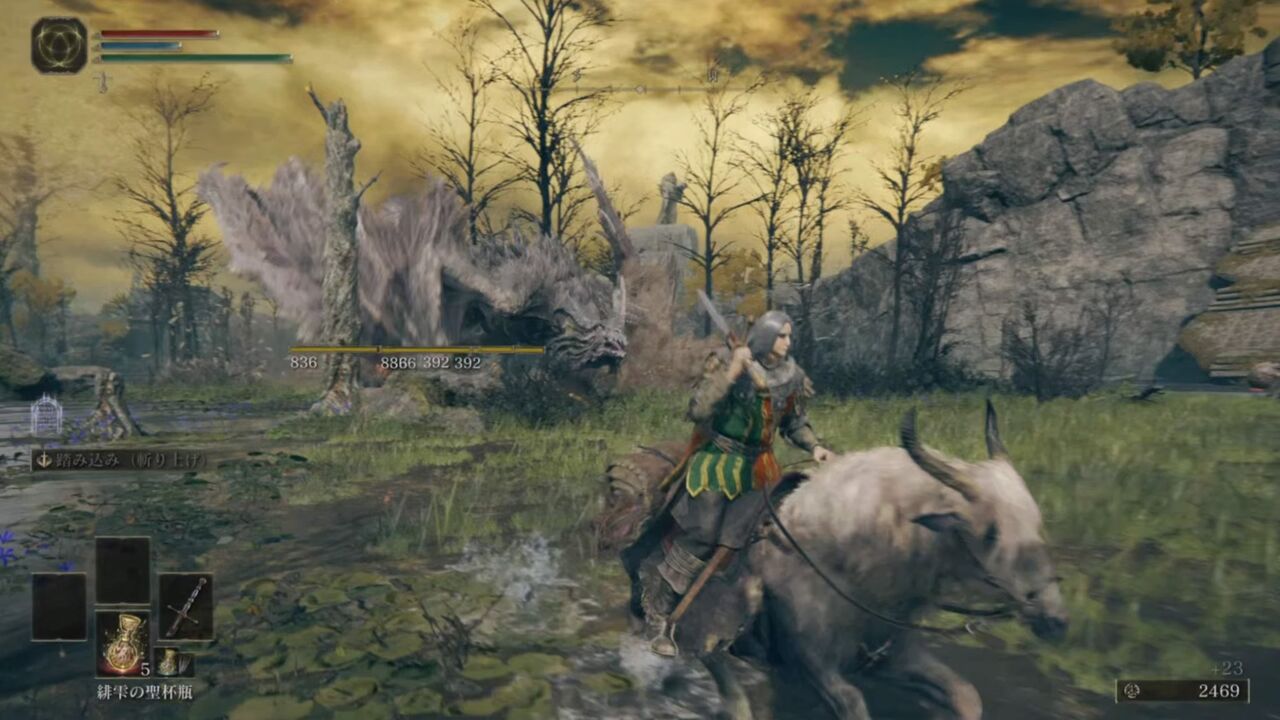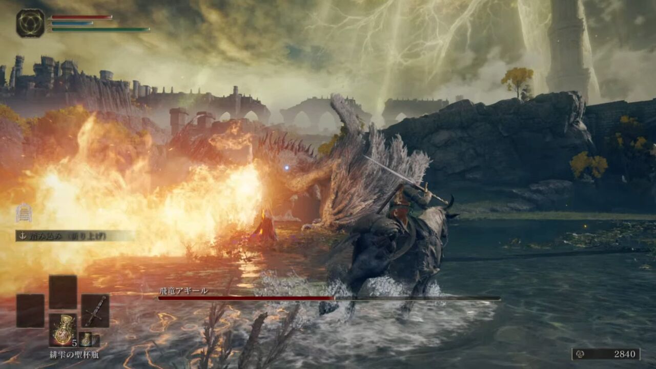 戦う場所も湖の広い場所なので馬で走り回ってると攻撃ほぼ当たりませんw
