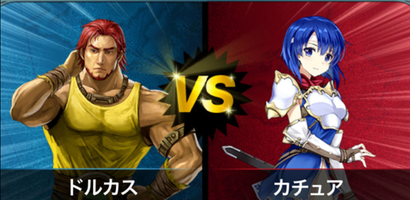 こちらは明らかにFEHでは浮いている濃いおっさんドルカスとカチュアの対決とですね、ドルカスはかなり家族思いで本当に愛が溢れてるキャラだと思います